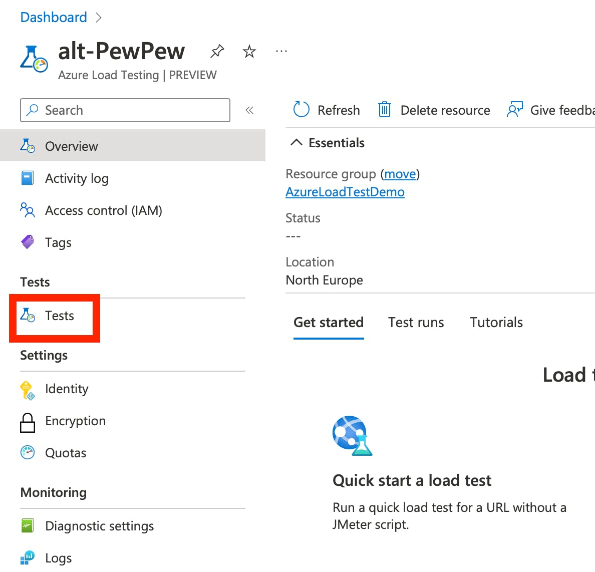 az load create --name alt-PewPew --resource-group AzureLoadTestDemo --location northeurope