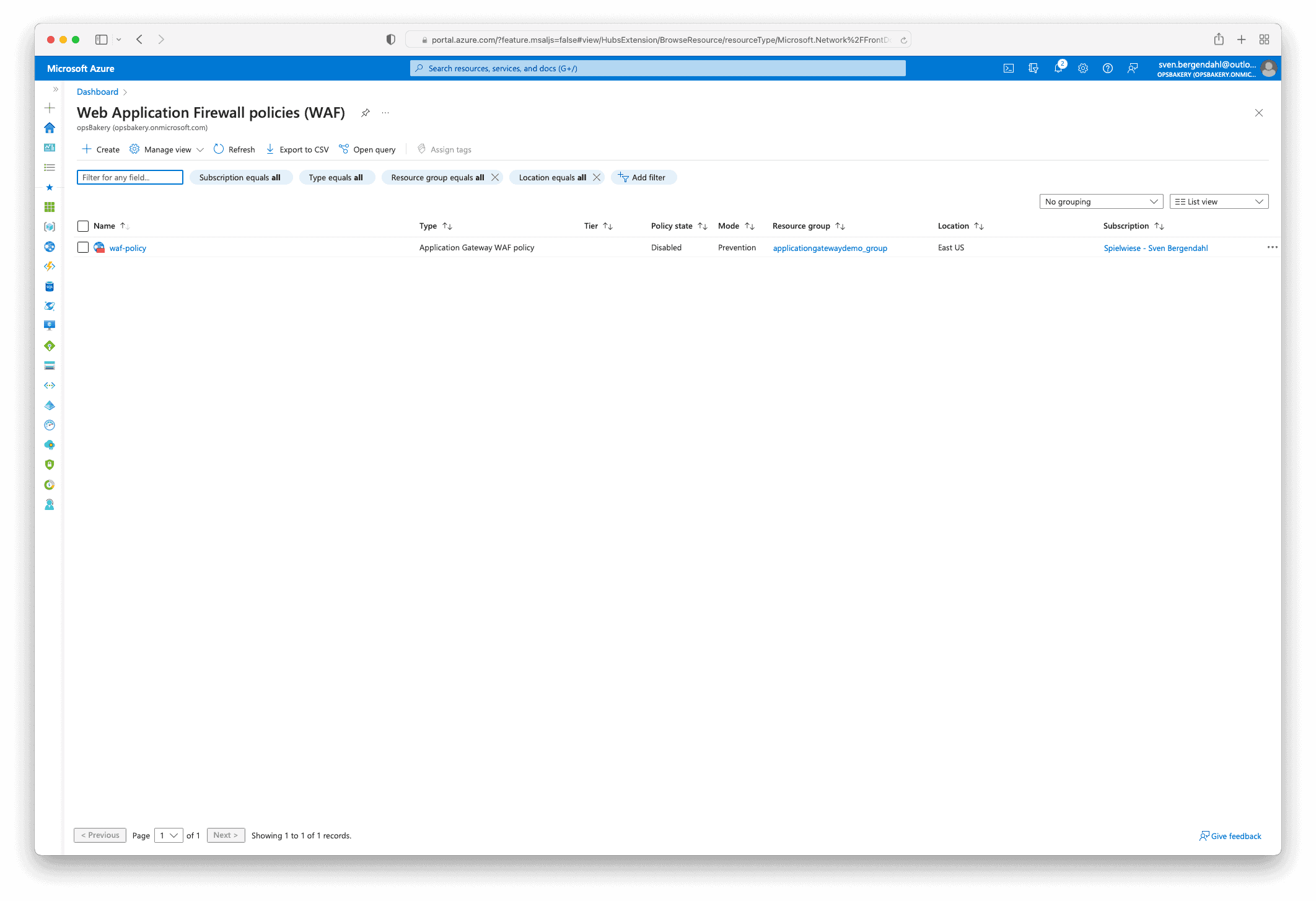 I presume you already created a Web Application Firewall policy; otherwise, you can search for it in the Azure Marketplace and create the resource.