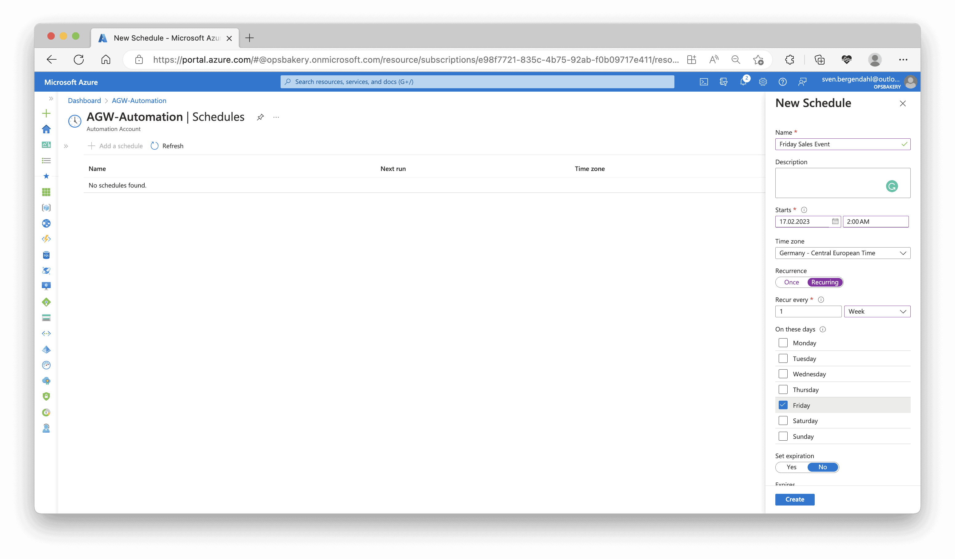After testing both scripts running and the application Gateway’s scaling is successful, you can schedule these two Runbooks when you search for “Shared Resources” within the Automation Runbooks and look for schedule. You can set one-time or recurring schedules there.